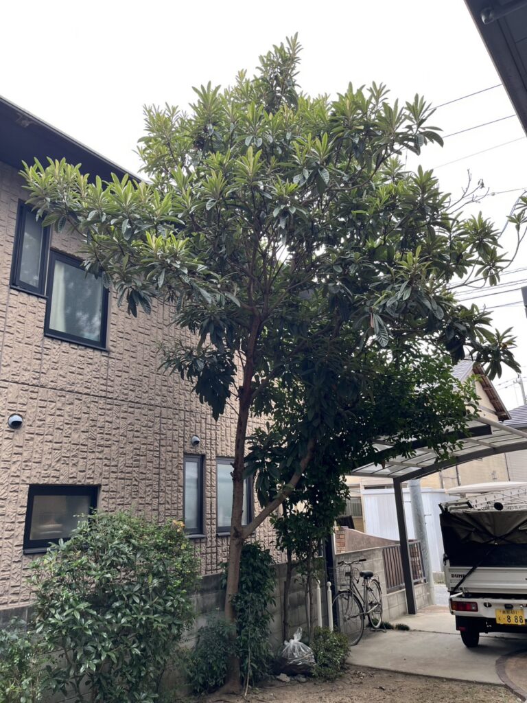 お見積りの際は、よく実がなって伐採するのもどうしようか考えていらっしゃいましたが、落ち葉や近隣に迷惑のこともあり、伐採を決断されました。