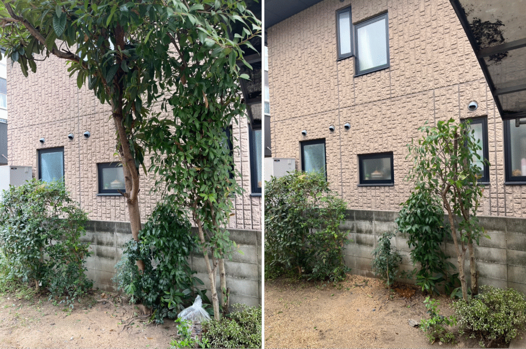 こちらは以前お子様がビアの種を植えられて、それが巨木になってしまって支障がでできた為、伐採のお問い合わせをいただきました。