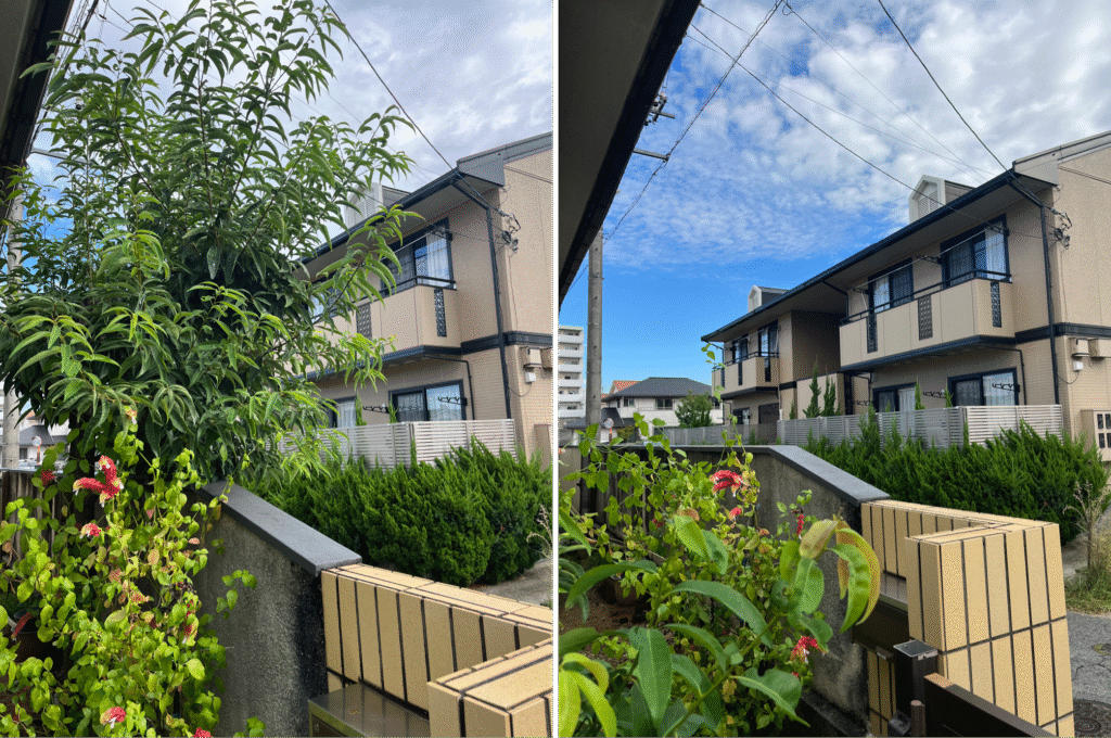 こちらの現場は、毎年この時期に剪定でリピートいただいてるお宅になります。今回は、以前から切ろうか迷っていた木を思い切って伐採をご利用いただきました。