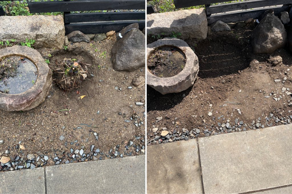 2026.03.26 施工実績 庭木の抜根 倉敷市沖 倉敷市沖にてソヨゴ、他の抜根を行いました。 こちらは、途中まではお客様の方で掘られていたのですが、それ以上は難しいとのことで断念されました。 もう少しではあったのですが、抜かせていただきました。 作業前 作業後 作業前後 このカテゴリの記事一覧に戻る