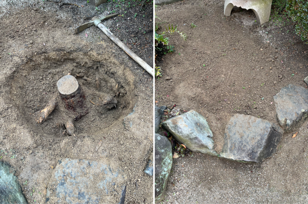 2026.04.07 施工実績 庭木の抜根 倉敷市西阿知町 倉敷市西阿知町にて切り株の抜根を行いました。 今回はいつもご利用いただいているお客様のお宅で、以前からある切り株を撤去させていただきました。 作業前 作業途中 作業後 作業前後 その他作業途中 このカテゴリの記事一覧に戻る