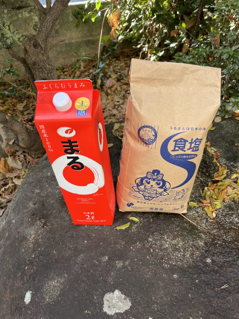 ・伐採前にお塩とお酒を木の根元へ撒き供養