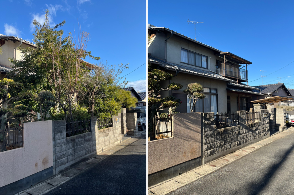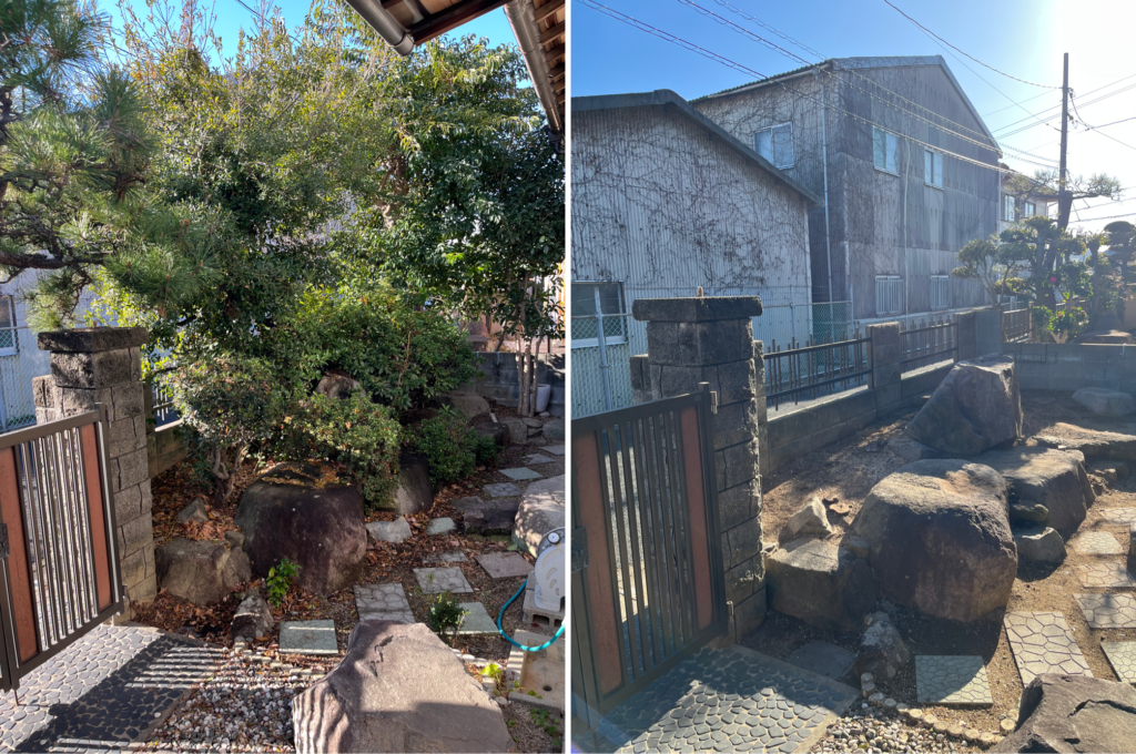 伐採後は庭全体がすっきりとした印象になり、お客様にも「心が軽くなったような気がします」と喜んでいただけました。