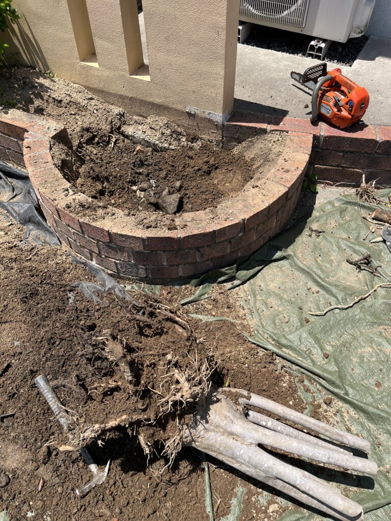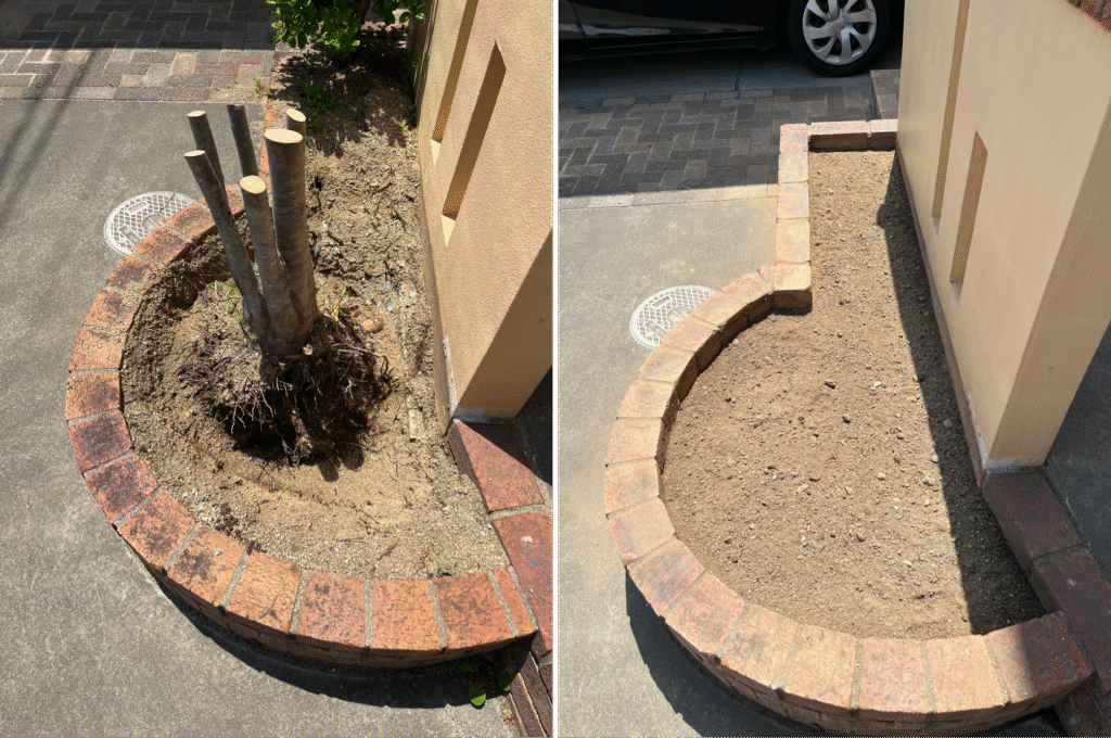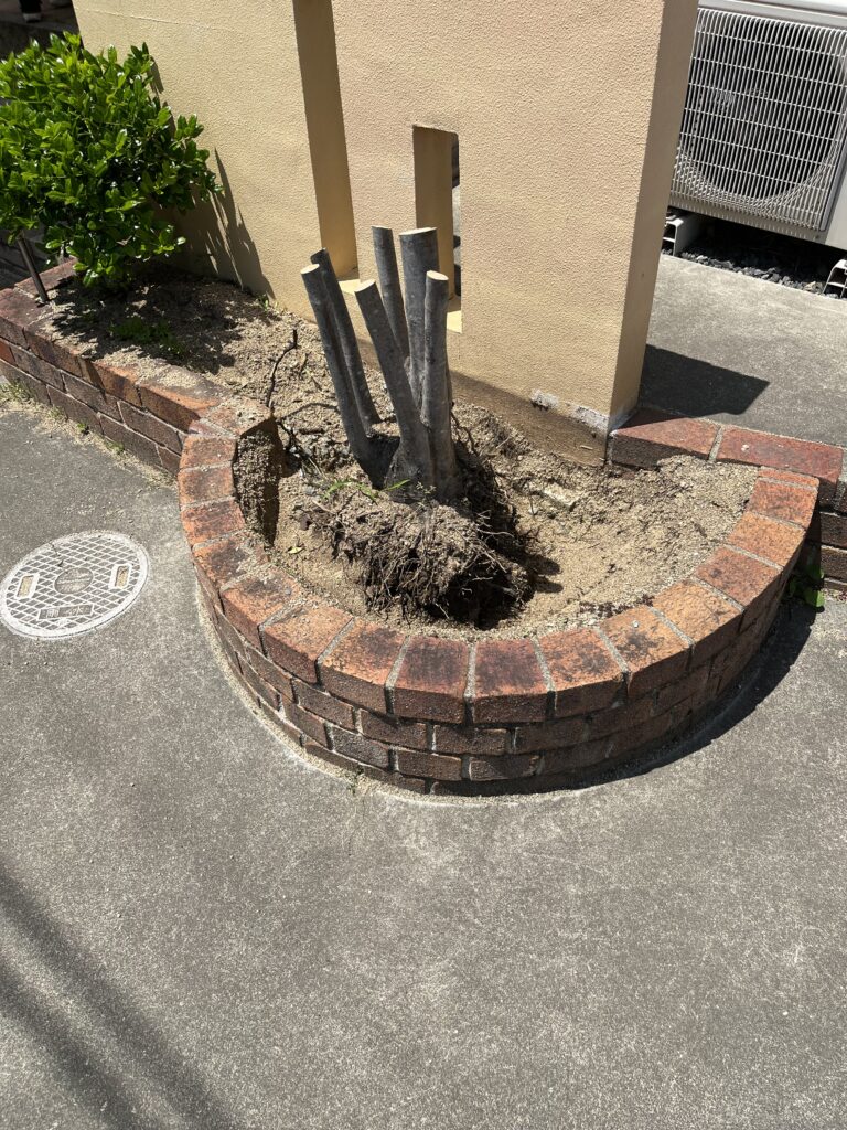 ・倉敷市茶屋町早沖での花壇内庭木2本の伐採・抜根を実施