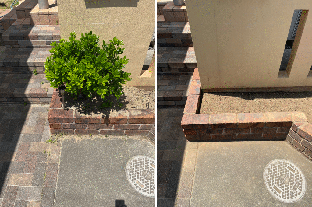 今回は、倉敷市茶屋町早沖にて、花壇内に植えられていた庭木2本の伐採および抜根作業を行いました。