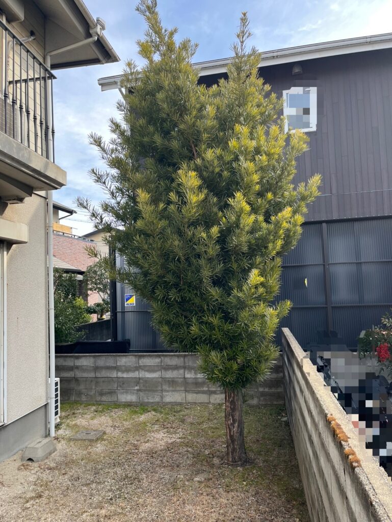 イヌマキは成長が早く、放置すると枝葉が周囲に広がりやすい樹種です。