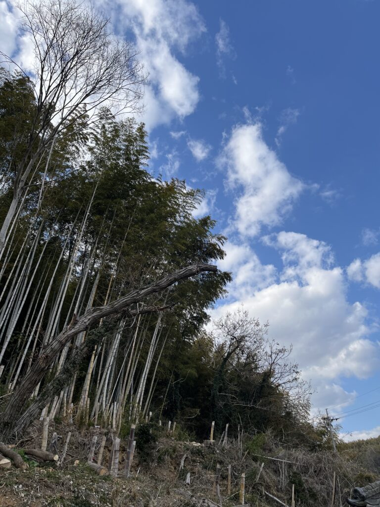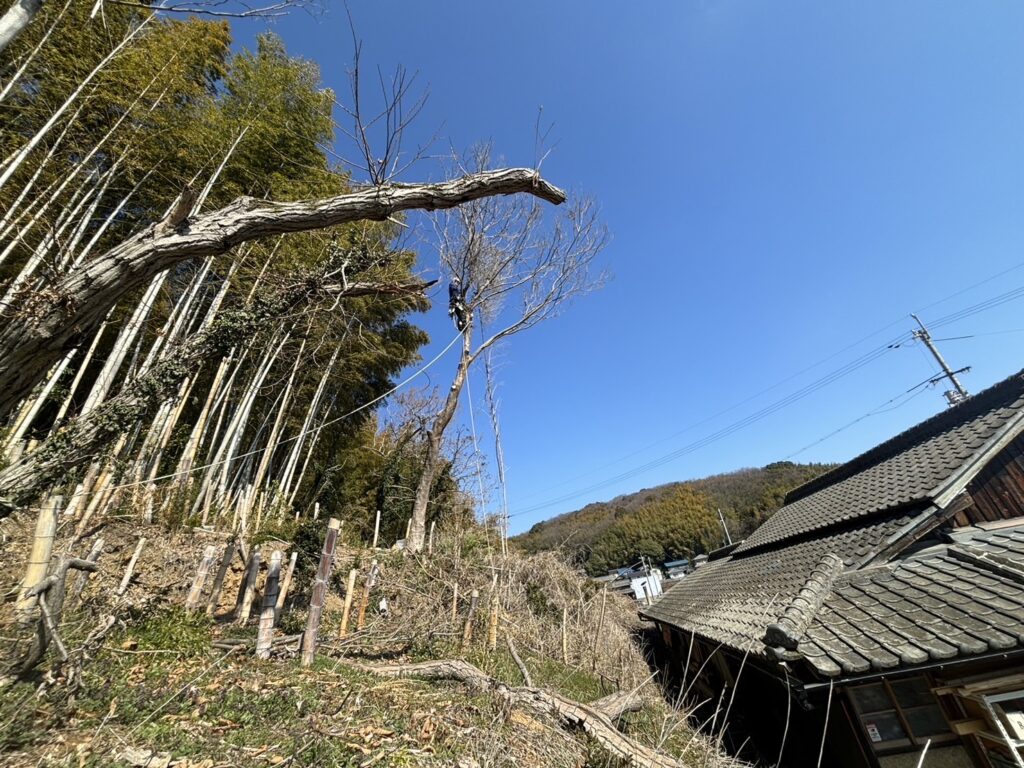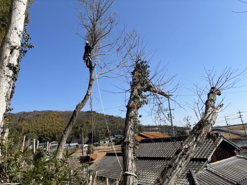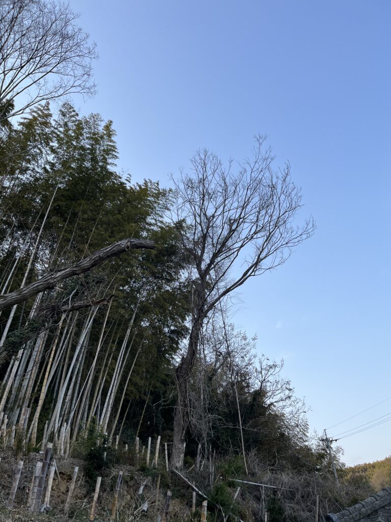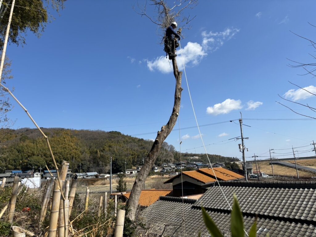 倉敷市船穂町水江で斜面に生えていた高木の伐採を行いました【施工事例】