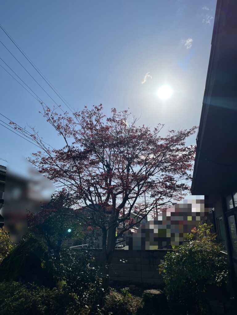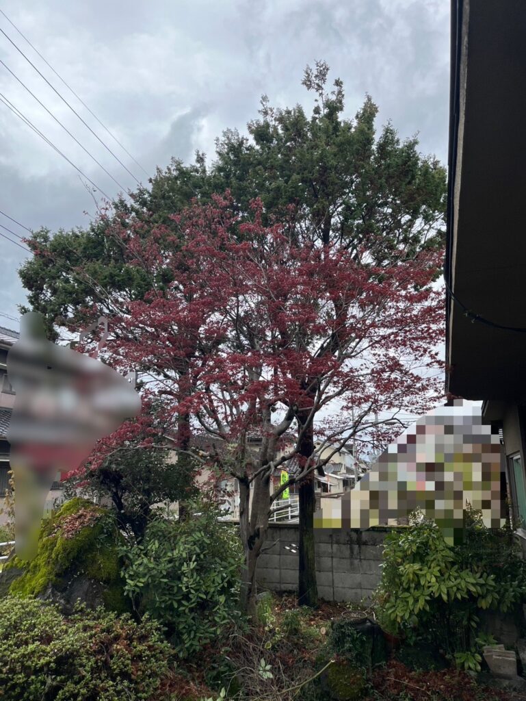 伐採対象木のすぐ隣には高さ約5mの紅葉が植えられており、「残してほしい」というご希望がありました。