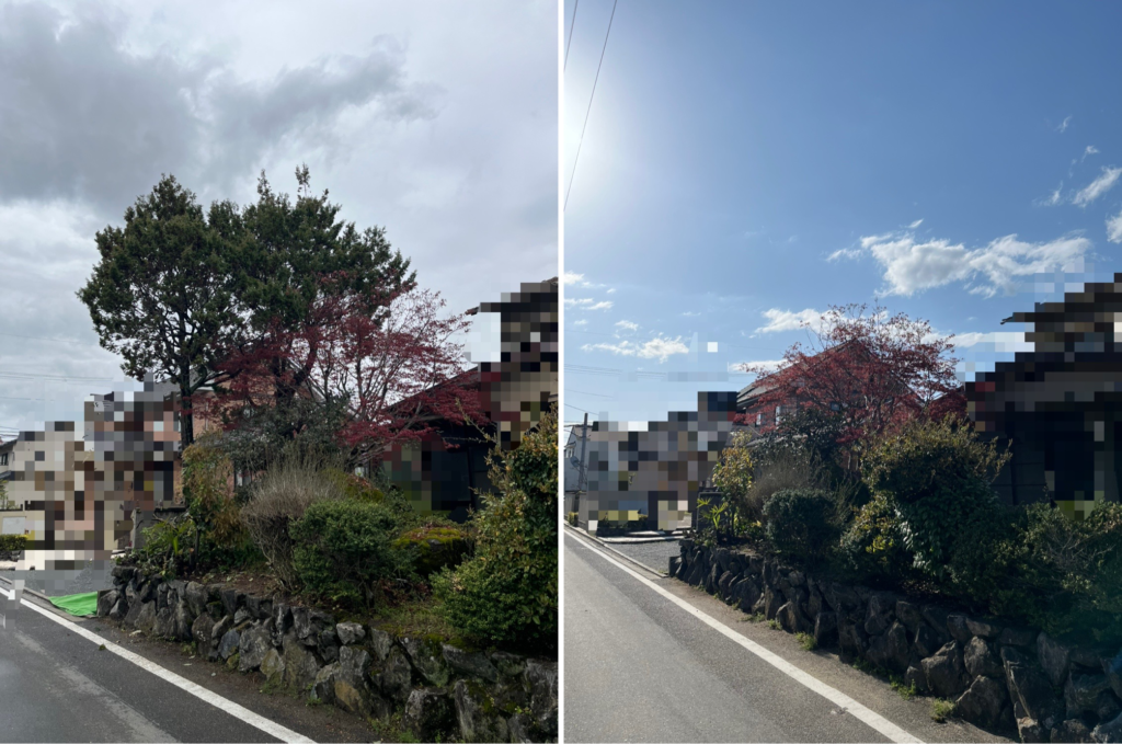 作業は安全に完了し、お客様からも「希望通りの形にしてくれて助かった」とご満足いただけました。高木伐採は近隣の樹木や建物への配慮が重要ですが、経験豊富なスタッフが安全第一で対応いたします。